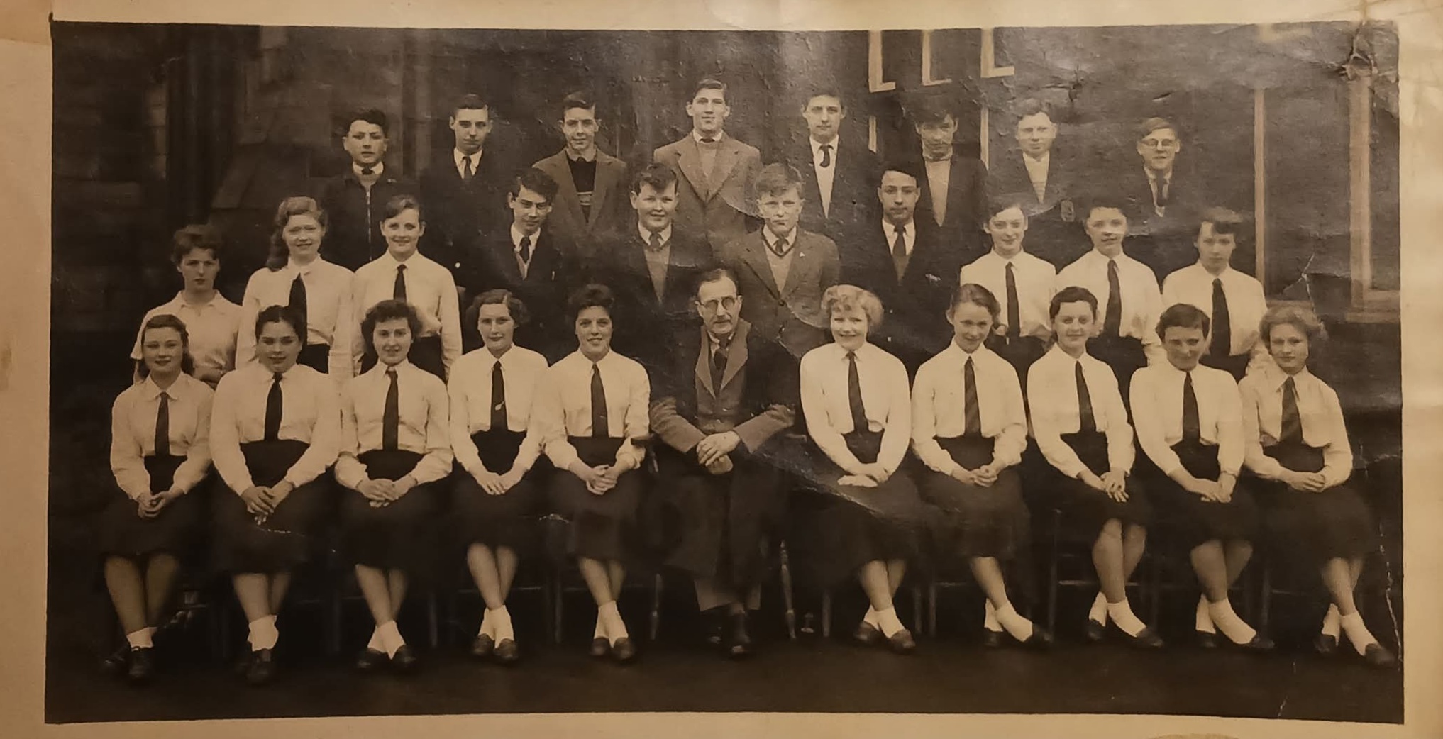 Back Row: Louisa Helliwell, Marjorie Saville, Mary Glover, Louie Naylor, Mary Mitchell, Trevor Hainsworth. Second Row: Leslie Glover, Elwand Smith, Irene Wilby, Evelyn Longbottom, Marjorie Marshall, Mary Radley, Millie Beever, Ivy Mitchell. Third Row: Mary Hepworth, Mary Senior, Marjorie Wilby, Gladys Ward, Mary Leach, Connie Lawton, Lily Hepworth, Barbara Andrassy, Lydia Clark, Nancy Naylor. Front row: Sydney Smith, Oliver Myers, Stanley Wilson, John ‘Chippie’ Sayer, Arthur Armitage, Harry Smith, Horatio Mitchell.