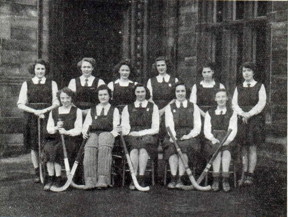 Ossett Grammar School 1st XI Hockey Team 1949/50. Back Row L- R: Shirley Farrar (Netherton), Dorothy Bartle (Ossett), Alma Fawcett (Ossett), Dorothy Firth (Ossett), Jean Birkenshaw, Enid Sykes? Front Row L- R: Audrey Illingworth, Patricia Andrassy (Horbury), Brenda White (captain)(Ossett), Ruth Nettleton (Ossett), Maureen Moore (Flockton)