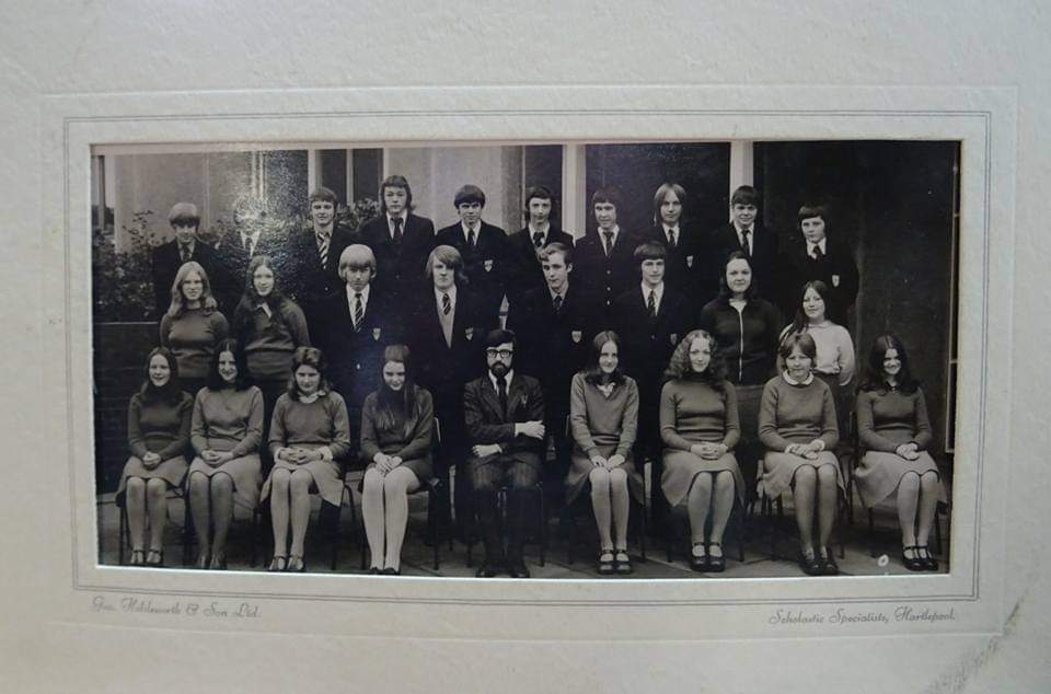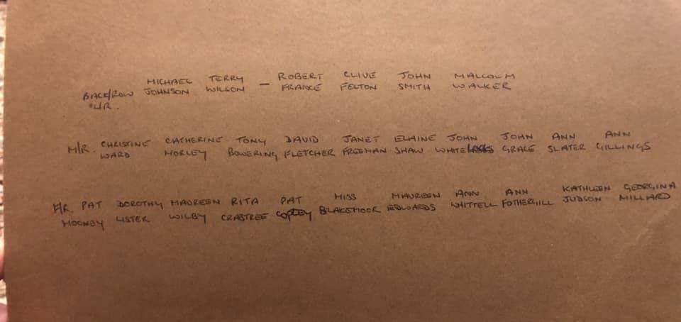 Information from Catherine Neild. Back row L to R Anne Marie Caunce, Sandra Hargreaves, Ann Barker, Karen Dunford, Gail Allott, Janet Gill, Susan Flintoff, John Crook, Patrick Bonner, Robert Audsley, Michael Brough, Richard Beaumont, Nigel Booth. Middle Row Karen Emmett, Suzanne Cant, Catherine Driver, Beverley ?, Christine Bowling, Jane Daltry, Peter Barker, ?, John Barker, ?, Martin Brummitt. Bottom row – ? , Beverley Embleton, Julie Breeze, Dilys Butler, Bill Hughes, Michael Beaumont, John Clegg, Michael Crawford, ?