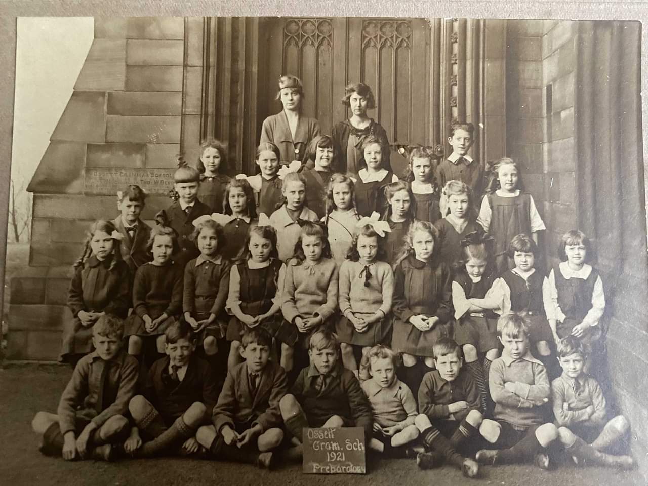 Here is another old class at Ossett grammar School —-the Prep Dept in 1921. Mrs F Foster, of West Wells Crescent, recalled the following names.