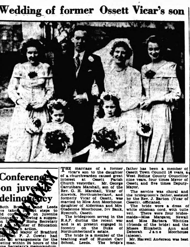 The Yorkshire Post (dated Friday April 22 1949) reported the wedding, saying that the bridegroom had served in the RAF during WW2 and, at the time of his marriage to Ann, was employed on the Duke of Northumberland’s estate where he was engaged in forestry. Perhaps he was inspired by his father?
