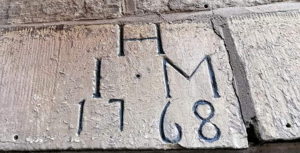 It is widely believed that the inscription says “HIM 1768”. But what does that mean? It was common practice for builders, or the owners of a building, to have their names inscribed above the door. So, who was “MH”? Who was “IH”?