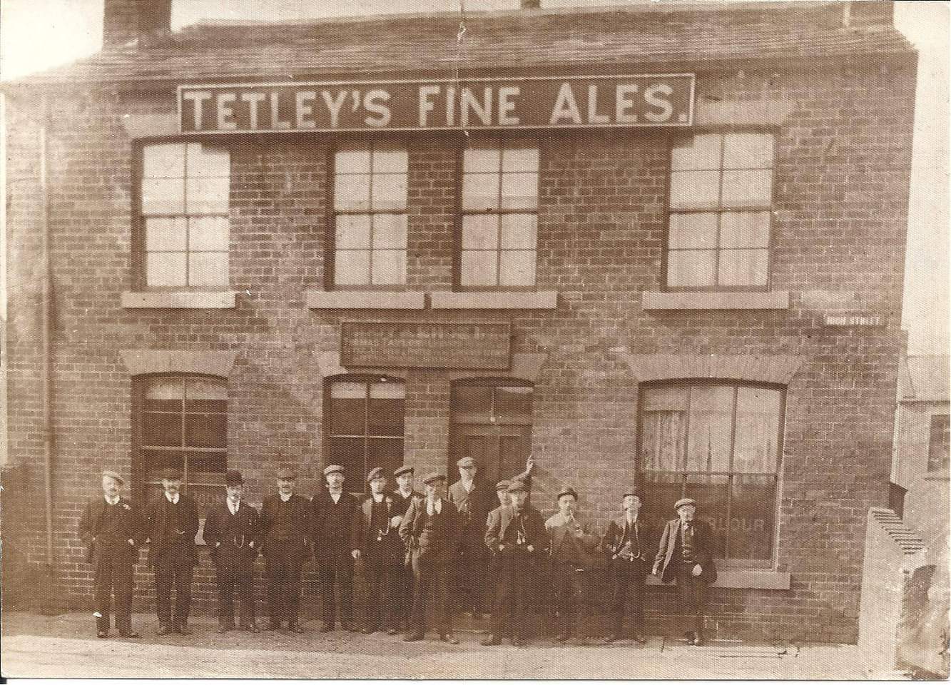 Many of Ossett’s pubs started as “beerhouses” after 1830, when householders could start selling beer and cider for a licence fee of only two guineas (£2. 2s. 0d or £2.10p). This was mainly as a result of the government of the day attempting to reduce the great consumption of gin. Certainly in London it was no exaggeration that on gin one could be “Drunk for a penny, dead drunk for twopence”. The specialist brewers, like Tetley in Leeds, were supplying their local areas from the 1770’s, and had started adding hops to the beer to extend its life. Subsequently, they bought out many of the “houses” which they were supplying, and these became ‘tied’ houses for that beer only. However, in Ossett, most of the “houses” were independent, and local beer brewing continued right up to the 1890’s. More varieties of beer became readily available – Pale Ale, Barley Wine, Porter, although Lager (which was available in the 1880’s) did not catch the public palate until the 1950’s – and only then perhaps because the Military Services had been drinking it on the Continent at the end of the War.