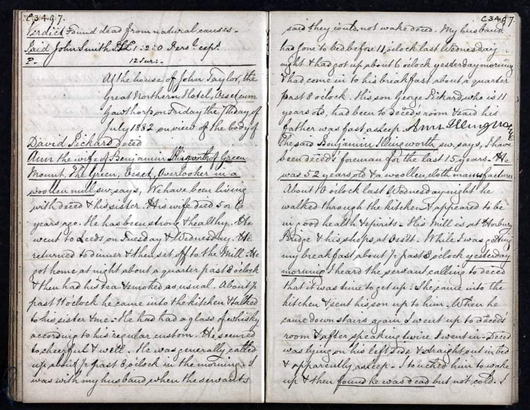 20 Nov 1869 On Tuesday night, Mr T. Taylor, coroner, held an inquest at the Travellers Inn into the sudden death of Honor Mitchell, a poor old lone Irish woman who had lived in Knowles Yard, Streetside, Ossett, and who was found dead in her house on Monday morning last. Verdict of the Jury – “Died from natural causes”.