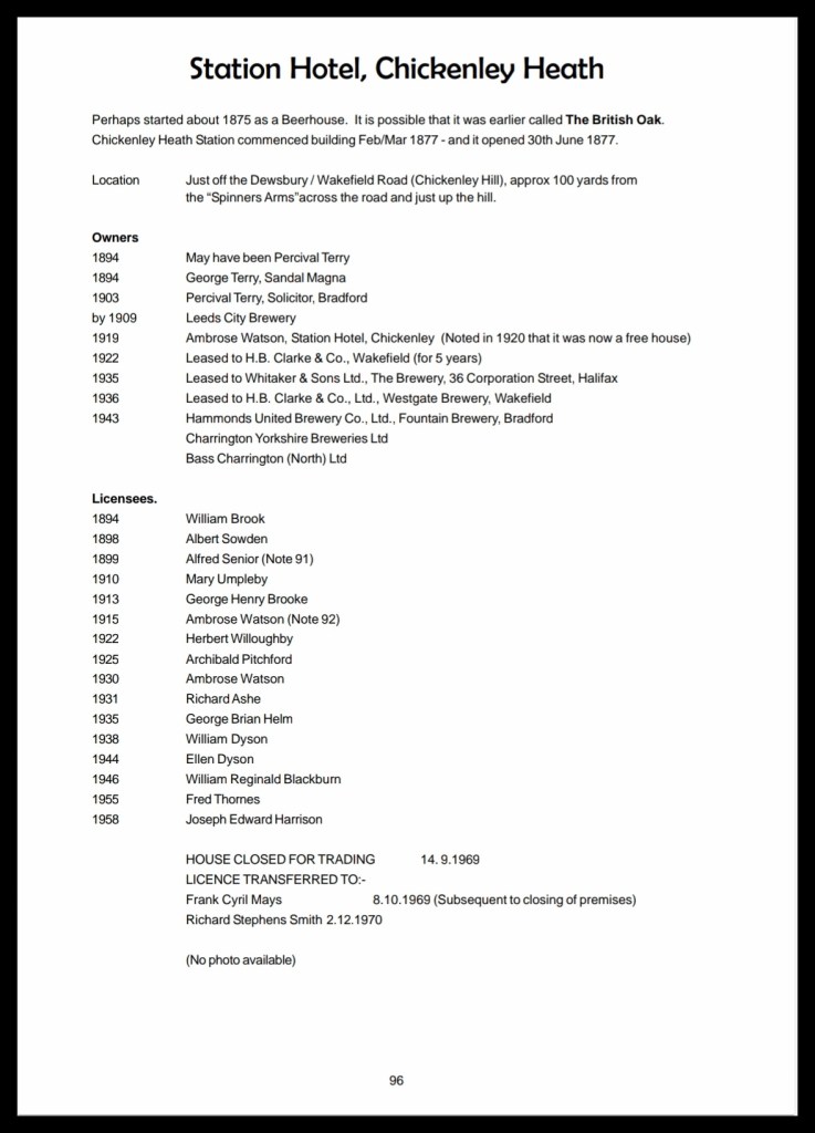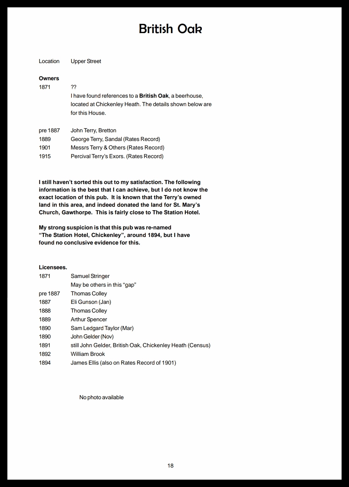 Since Brian produced his book I’ve discovered evidence that proves his theory was correct. The British Oak was indeed renamed The Station Hotel. He was only a few years out – the name changed on March 7 1898. – AMF 2022
