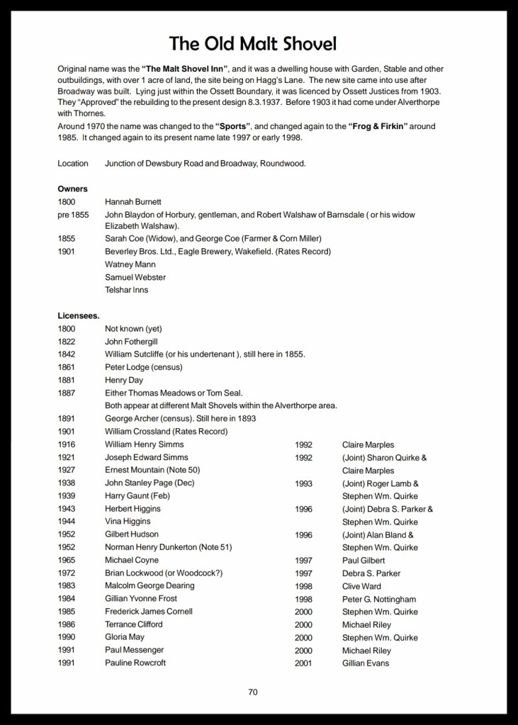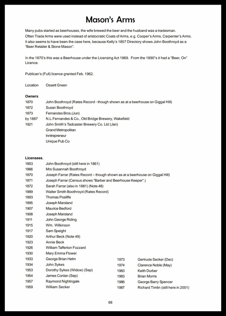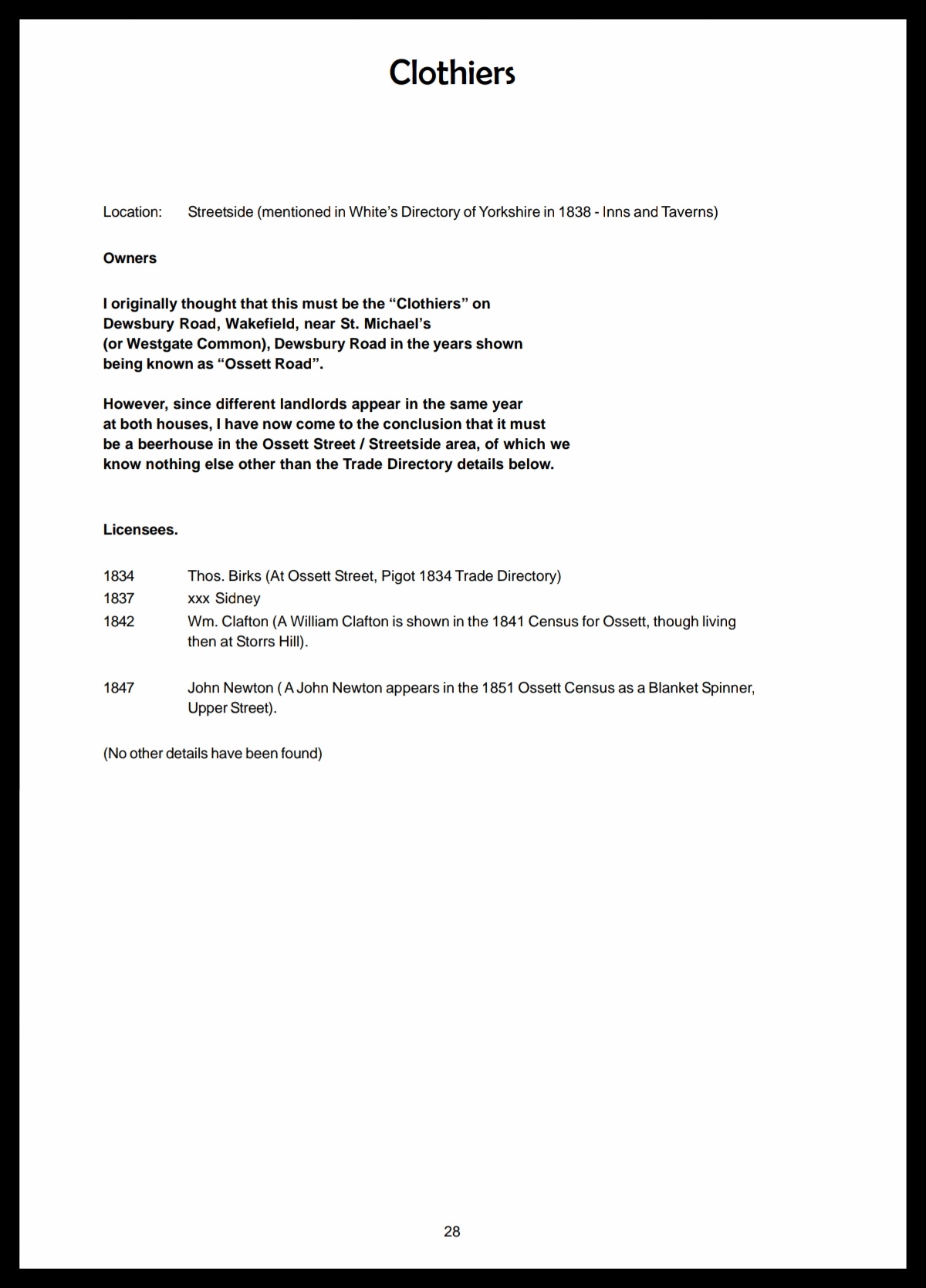 21 Jan 1871 An inquest was held yesterday morning at the Victoria Inn, South Ossett, by T. Taylor Esq on view of the body of William Brook, aged 10 weeks, son of James Brook, Dyer.