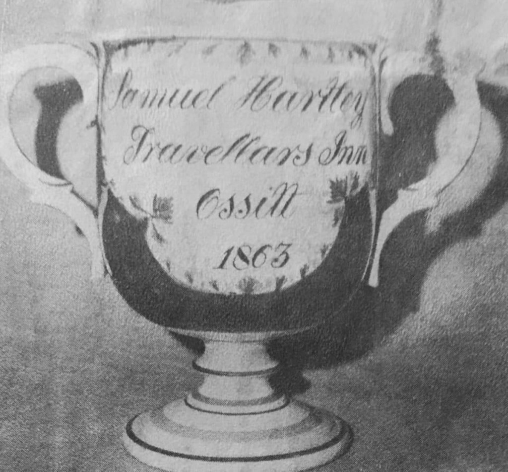 In 1863 Samuel Hartley ordered this “loving cup” to be made. Eight inches tall and five and a half inches in diameter, with an immaculate finish, the cup was a deep blue and white. Nobody appears to know why he had it made. The cup was passed down through the family and in 1931, just before his marriage to Jessie Lunn, it was given to Mr Samuel Hartley Longbottom, the great grandson of Samuel Hartley. Samuel and Jessie lived at Glenallen, 105 Dale Street and for more than fifty years, it stood on a shelf in the hallway of their home. Notice the errors on the cup? “Travellars”. Though he offered no theory, Mr Longbottom was convinced this was deliberate, that the inn was in fact The Travellars. Another error, “Ossitt”. His explanation for this? “Who doesn’t pronounce it that way?!” Fair enough! So, were there ever two pubs adjacent to each other – The Traveller’s Rest /The Travellars and The Commercial. Or are they one and the same? Also … what happened to the cup?