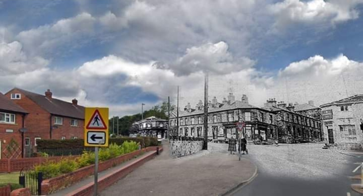 The Commercial, Horbury Road can be seen on the far right. This blendedimage was created for Ossett Through The Ages (OTTA) by Julian Gallagher.