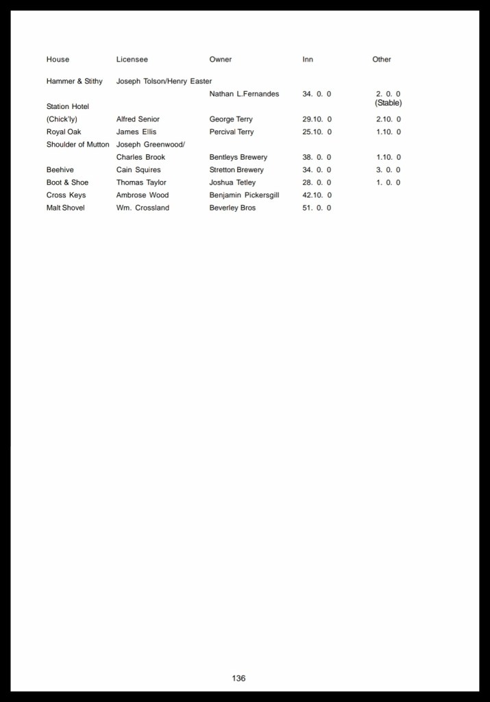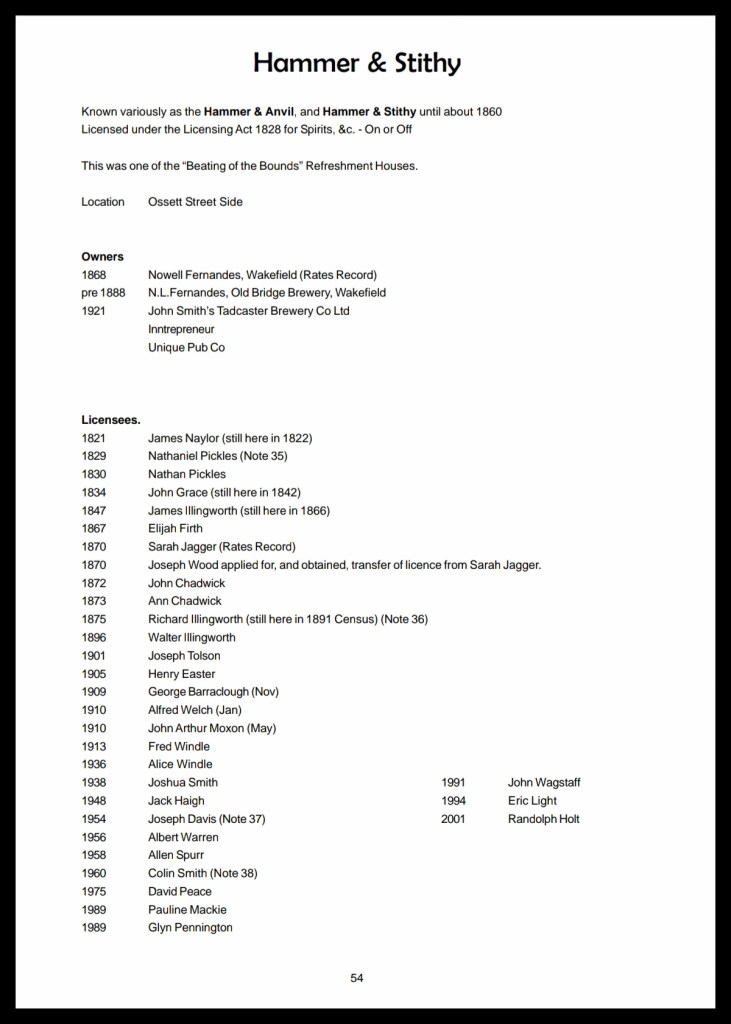 14 Oct 1871 Transfer. John Chadwick applied on Friday for a provisional transfer of the Hammer & Stithy, late in the occupation of Joseph Wood. The applicant put in a strong memorial from Leeds people and also one from the Chief of the Police there.