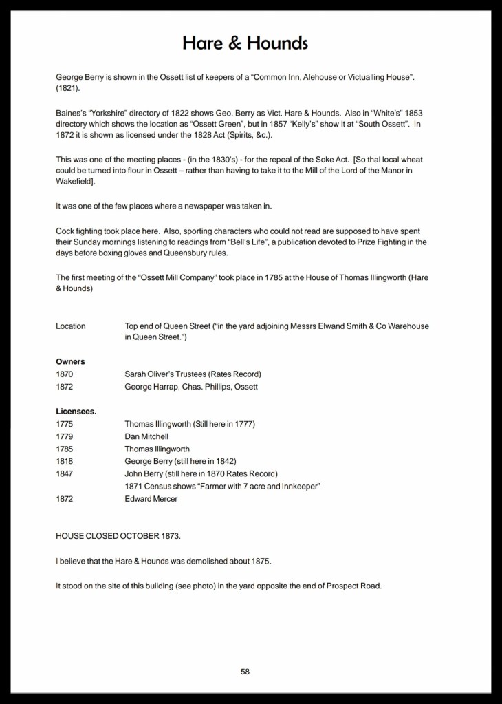 27 Apr 1867 The Good Intent Lodge. The Members of the above lodge (Grand United Order of Oddfellows) held their annual feast day on Easter Monday at the Hare & Hounds Inn, Ossett. A fine dinner was provided for upwards of 120 members who did ample justice to the roast beef and mutton so well served up by the host and hostess (Mr & Mrs John Berry), who gave great satisfaction as usual.