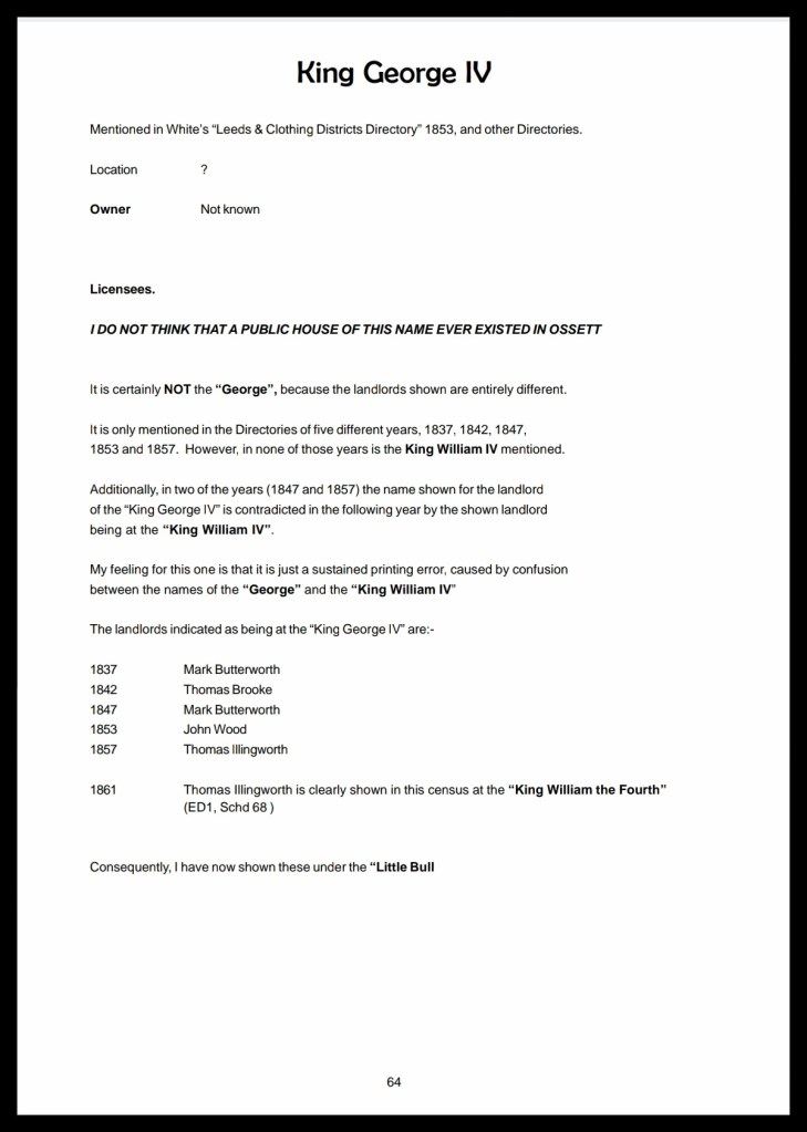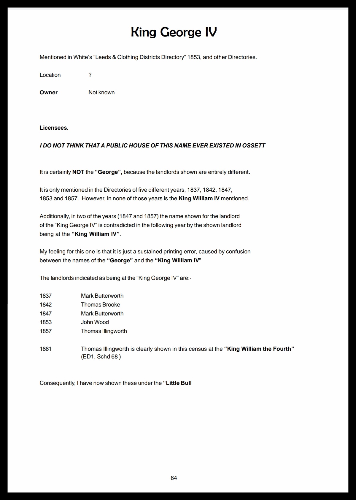 1 Sep 1866 Isaac Westerman, who keeps the King William Inn, Ossett, sought at the Brewster Sessions, Dewsbury, on Monday, to get the new licence for a new and more commodious house to which he had just moved. He intended to give up the old licence.