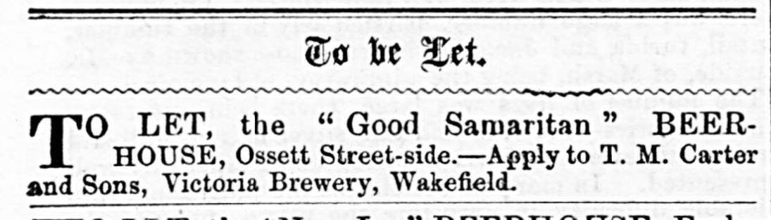 14 May 1870 Edwin Woodcock, keeper of the Good Samaritan Inn, Ossett, was yesterday summoned before the West Riding magistrates at Dewsbury for permitting drunkenness in his house on Sunday night last. The case however was adjourned until Monday next.