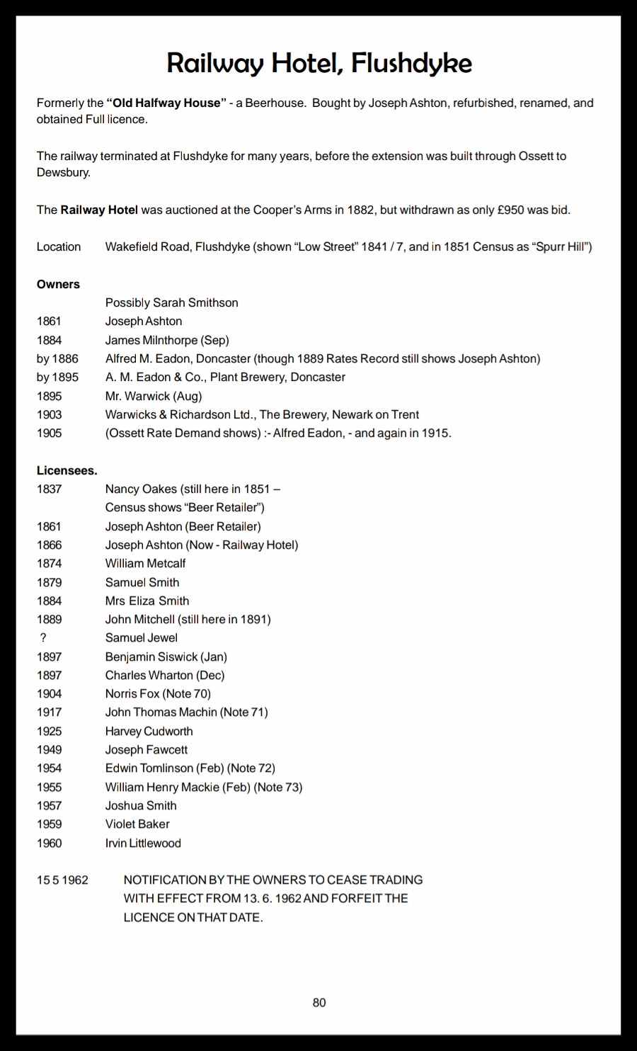 18 Jun 1870 Selling beer during prohibited hours. At the Dewsbury Police Court yesterday, William Ayliff, beerhouse keeper, Ossett, was charged with selling beer during prohibited hours. [Note – “Railway Tavern”].