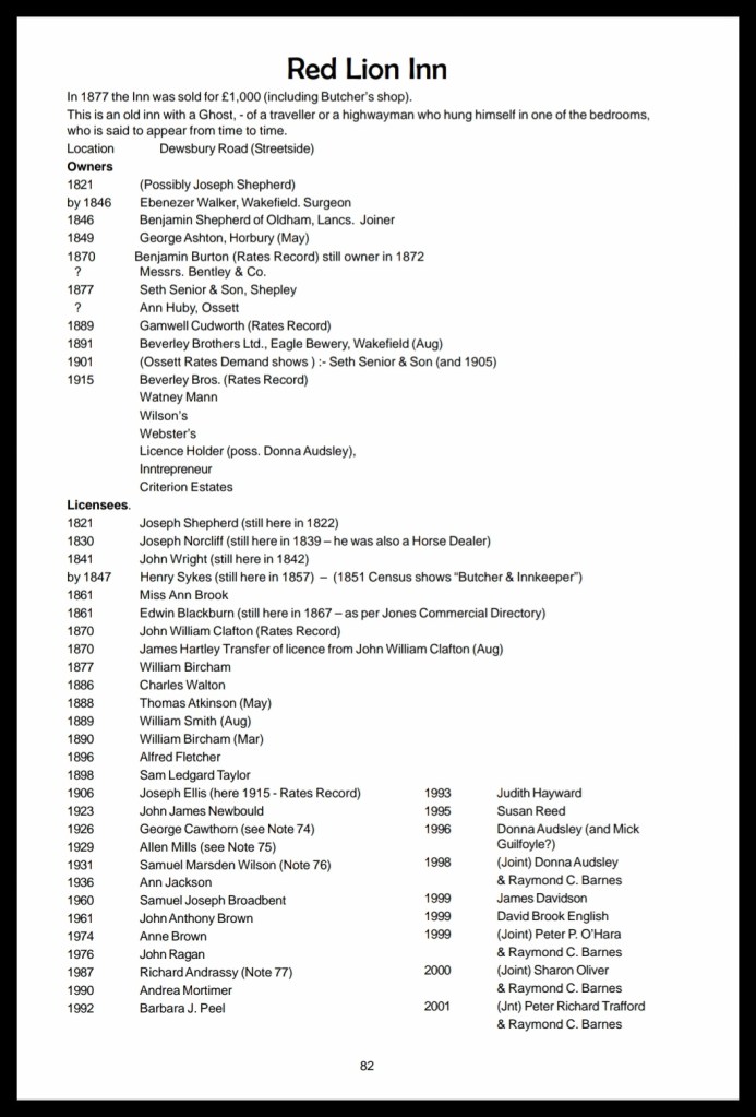 30 Jul 1870 The Ossett Board of Surveyors now meet at the George Inn. 6 Aug 1870 At the Dewsbury Police Court on Monday James Hartley, Ossett, applied for a provisional transfer of the Red Lion Inn, from John William Clafton to himself. Granted.