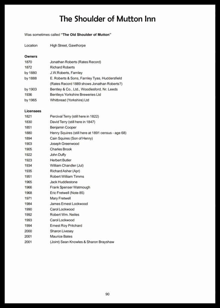 3 Nov 1866 Miners meeting. Miners on strike held a meeting at Gawthorpe on Wednesday evening at the Shoulder of Mutton Inn, at which Mr Thomas Lonsdale presided.