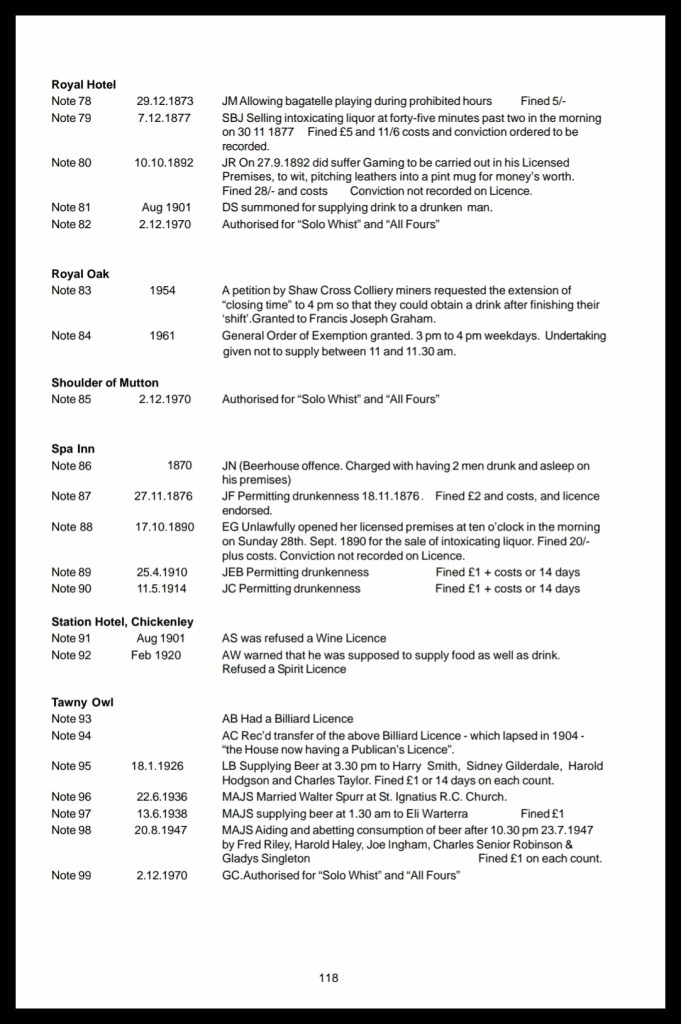 2 Sep 1871 Drunk and refusing to quit. At the Dewsbury Police Court on Monday last, Joseph Ramsden of Horbury was fined 10/- and costs for being drunk and refusing to leave the Spa Inn at Ossett Spa on the 27th ult.