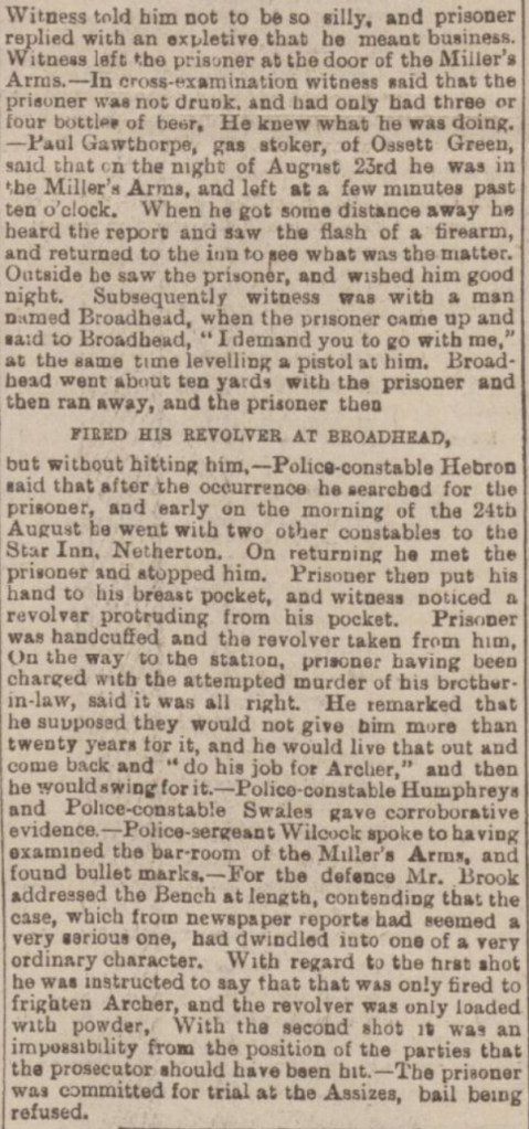 13 Nov 1869 At the Dewsbury Police Court yesterday, Benjamin Siswick, Henry Brown and Edward Archer were charged with being drunk and refusing to leave the Weavers Inn, South Ossett, at two o’clock on the morning of the 6th instant. P.C. Fiddler had to be called in to eject them. They were fined 20/- and costs in each case.