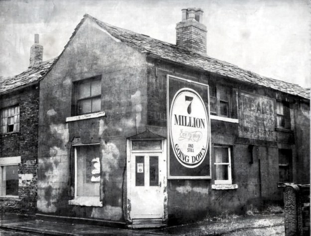 On January 1 1945 John Smith’s Tadcaster Brewery, who then owned The Old Carpenters Arms, gave permission to the licensee Tom Ellis to install an advertising board, measuring 21ft ×12ft, on the wall of the adjoining shop. The board can be seen in these photos from the 1960s. Photographer unknown.