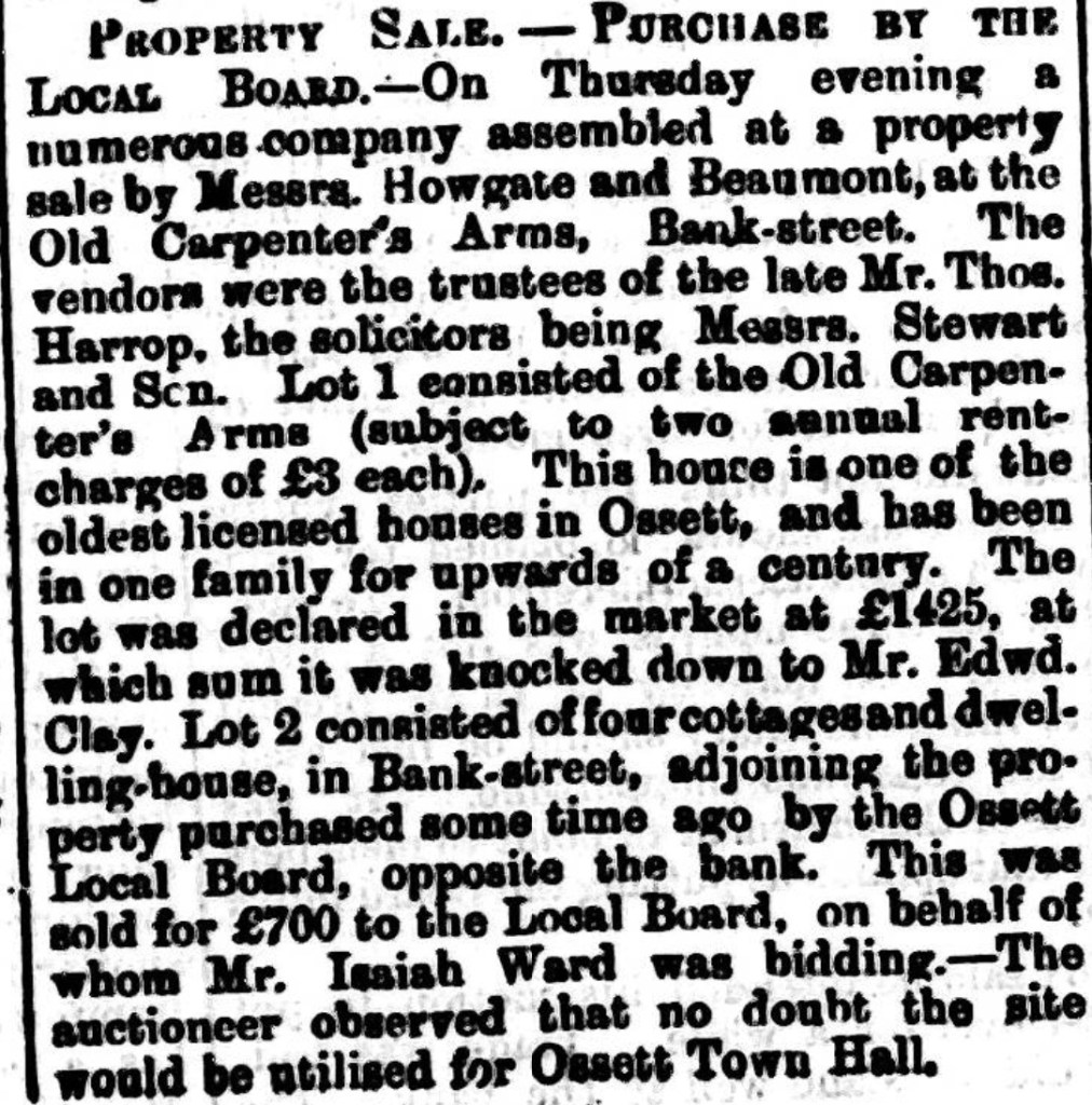 10 Feb 1866 A sale of property took place at the Carpenter’s Arms last Monday night.