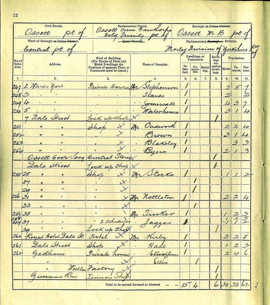 Ossett was described as “a small manufacturing town devoted to the sorting and preparation of rags for the making of mungo.” It was said to be a “mean looking town” with no large mills but many small factories.