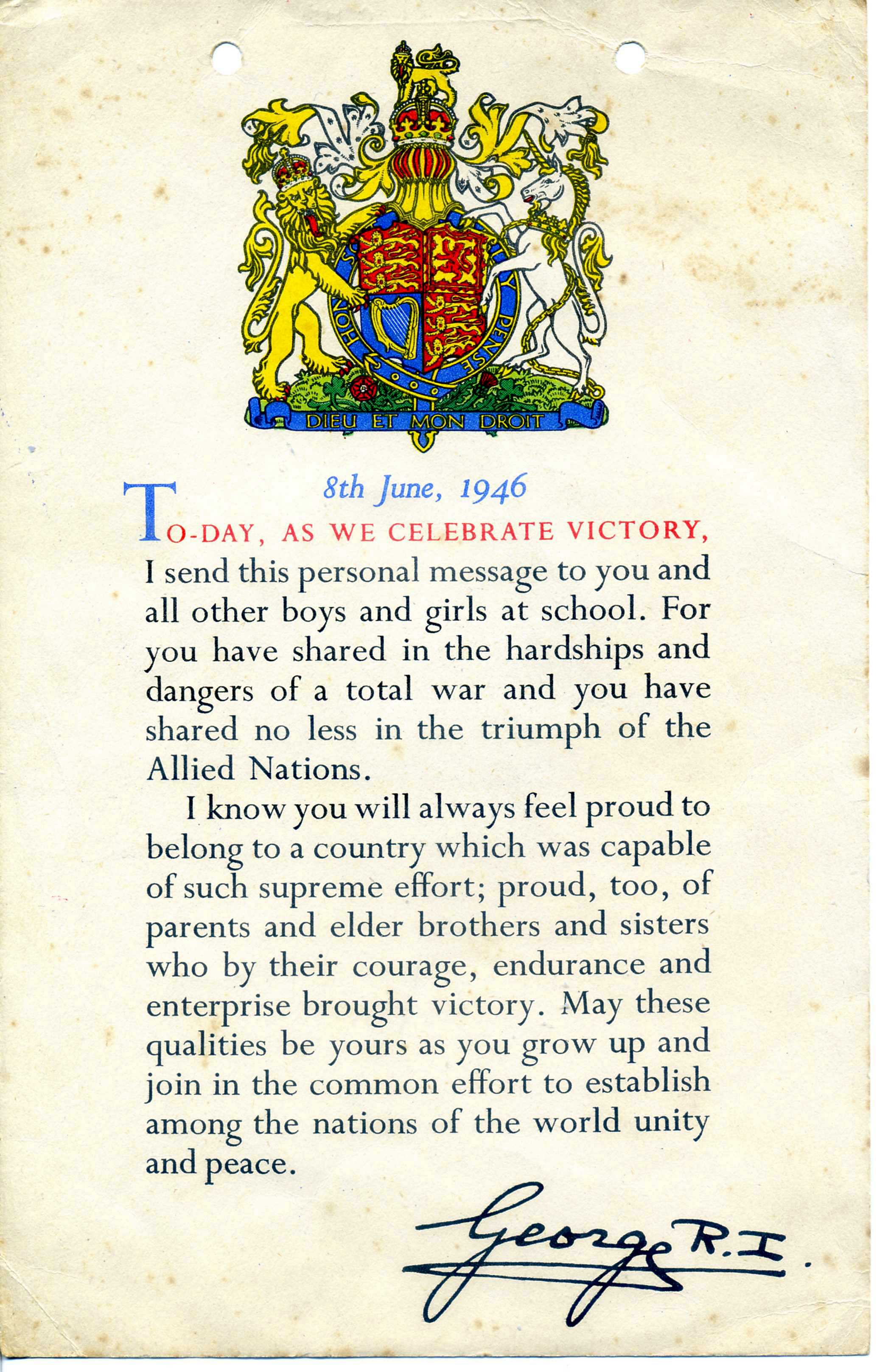The war in Europe ended in May 1945 but the war with Japan carried on until August. I remember we had a ‘fancy dress’ party and a bonfire to celebrate. Instead of Guy Fawkes there was an effigy of Adolf Hitler on top of the bonfire. I was dressed as a ‘gypsy’.