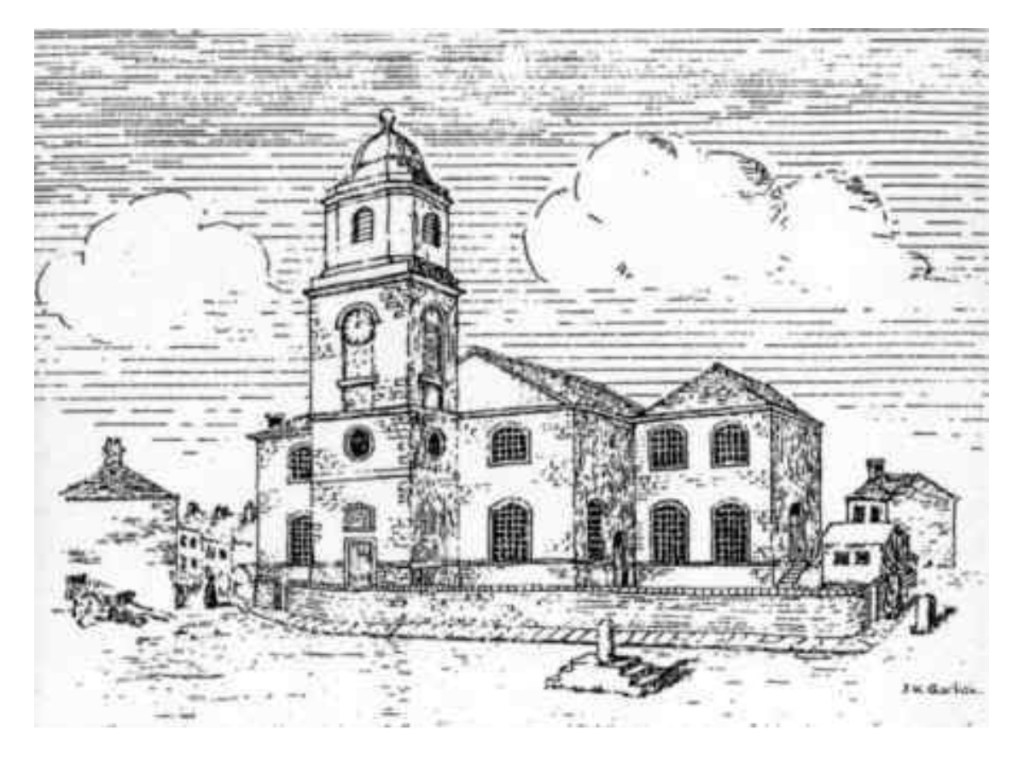 The old church was largely financed by Reverend Edward Kilvington who ultimately became so big and heavy that he couldn’t get up the stairs of the pulpit. This led to the installation of a three-decked pulpit, which in reality was a primitive lift. Before the Sunday service, he got into his chair at the bottom of the pulpit steps and then the church sexton, by hauling a rope, slowly wound him up to the top level! The old church, which was said by some to have looked more like a courthouse and was described as ‘small, inconvenient and an obstruction to traffic’, was inadequate for the needs of the township; yet it was almost 60 years before a new church was provided.