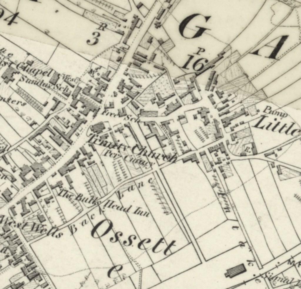 In 1915 one man’s memories of the old church were recorded in the Ossett Observer. He said the boys sat on one side and the girls on the other, behind the vicar who preached in a black gown. The parish clerk, John Nettleton, used to announce the hymns in a loud voice, saying: “Let us sing to the glory of God hymn number” such and such. (Cheers Nev!)