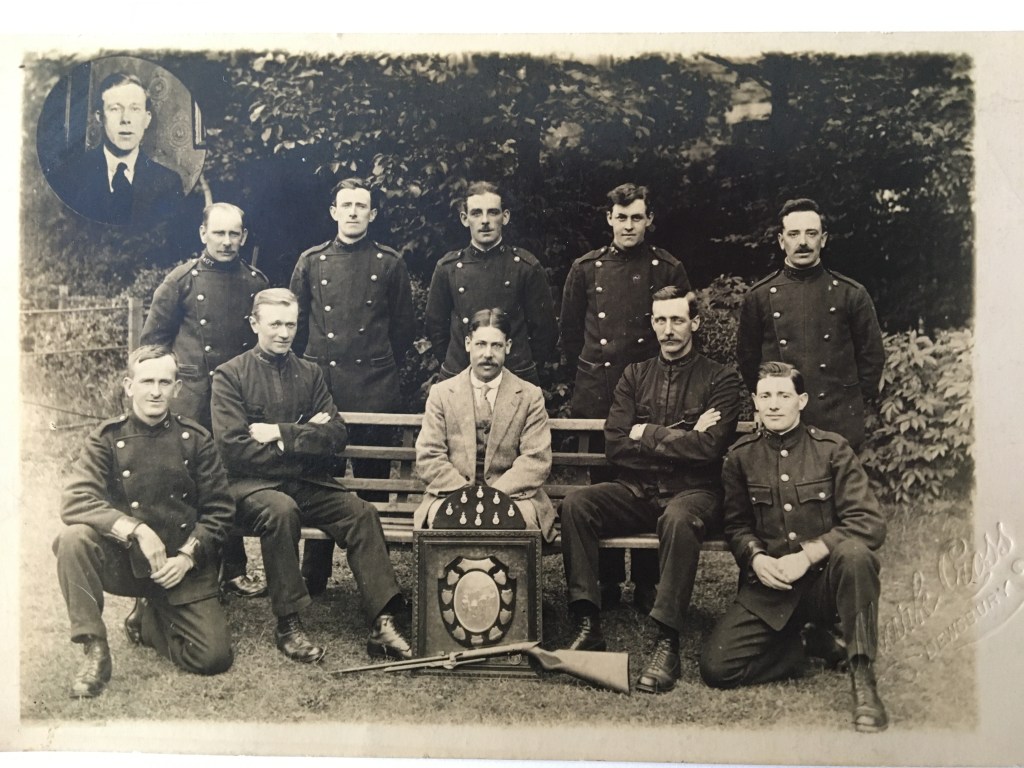 Please find attached my photo of the Dewsbury/Ossett rifle league which might be associated with the tram men. My great grandfather Arthur Raper is on the front row on the bench, right of centre. The photo was probably taken between 1910 and 1920, but I have no more information. I thought the guy in the cameo might be the president or something, but I am just guessing.